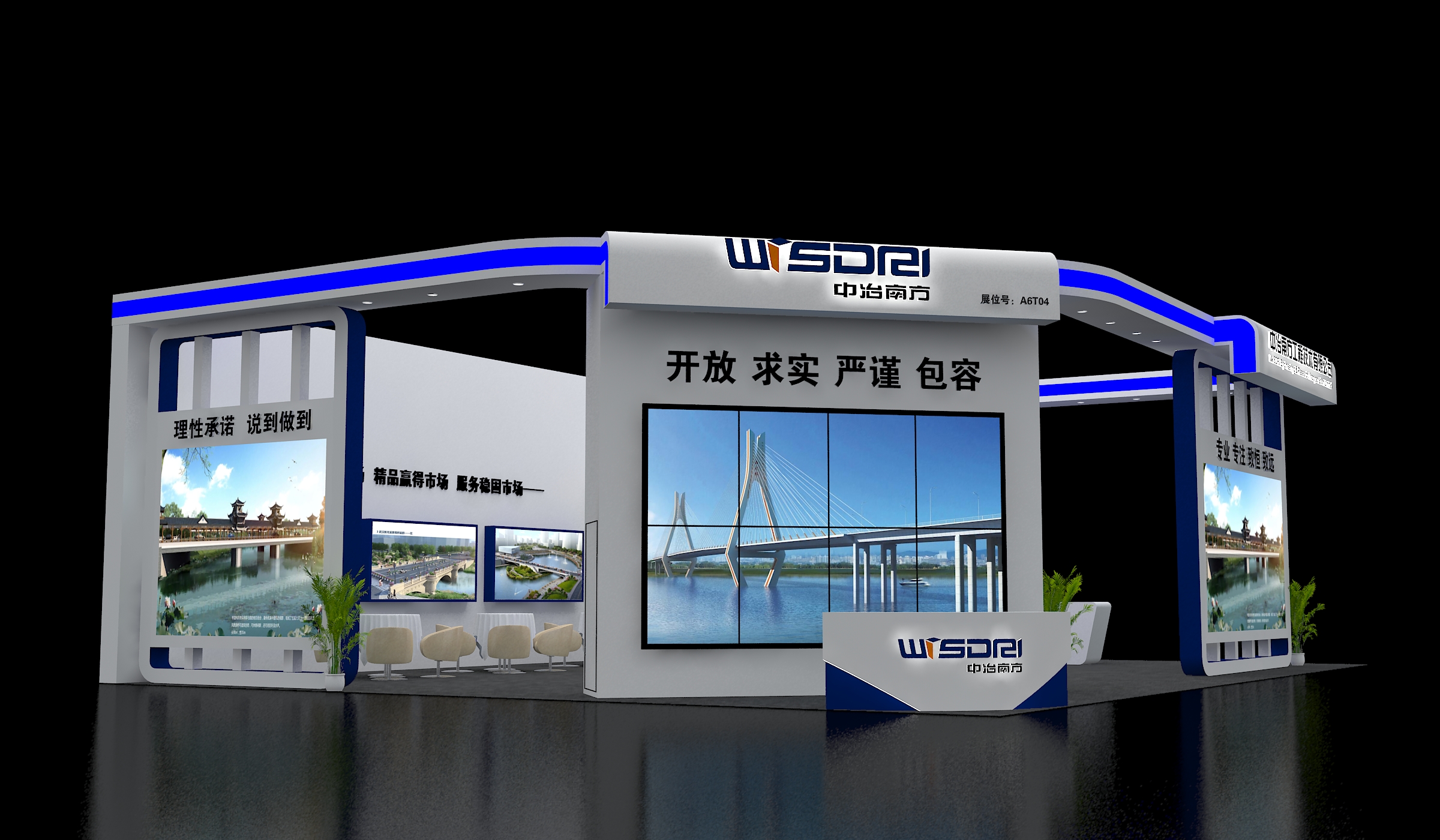 由于對橋梁行業的交流以及市場的拓展,中冶南方此次展會盛裝出席,定下180平米面積的展位展示自己的實力。司邁特以敏捷高效、富有創意的設計贏得此次競標,雖是第一次合作,但不論是從溝通環節的對接,還是工藝細節的處理,都使得整個展臺炫彩奪目,經過2天2夜的奮斗,咱們團隊圓滿的完成了領導交予的任務,同時也贏得了中冶南方領導的一致好評。