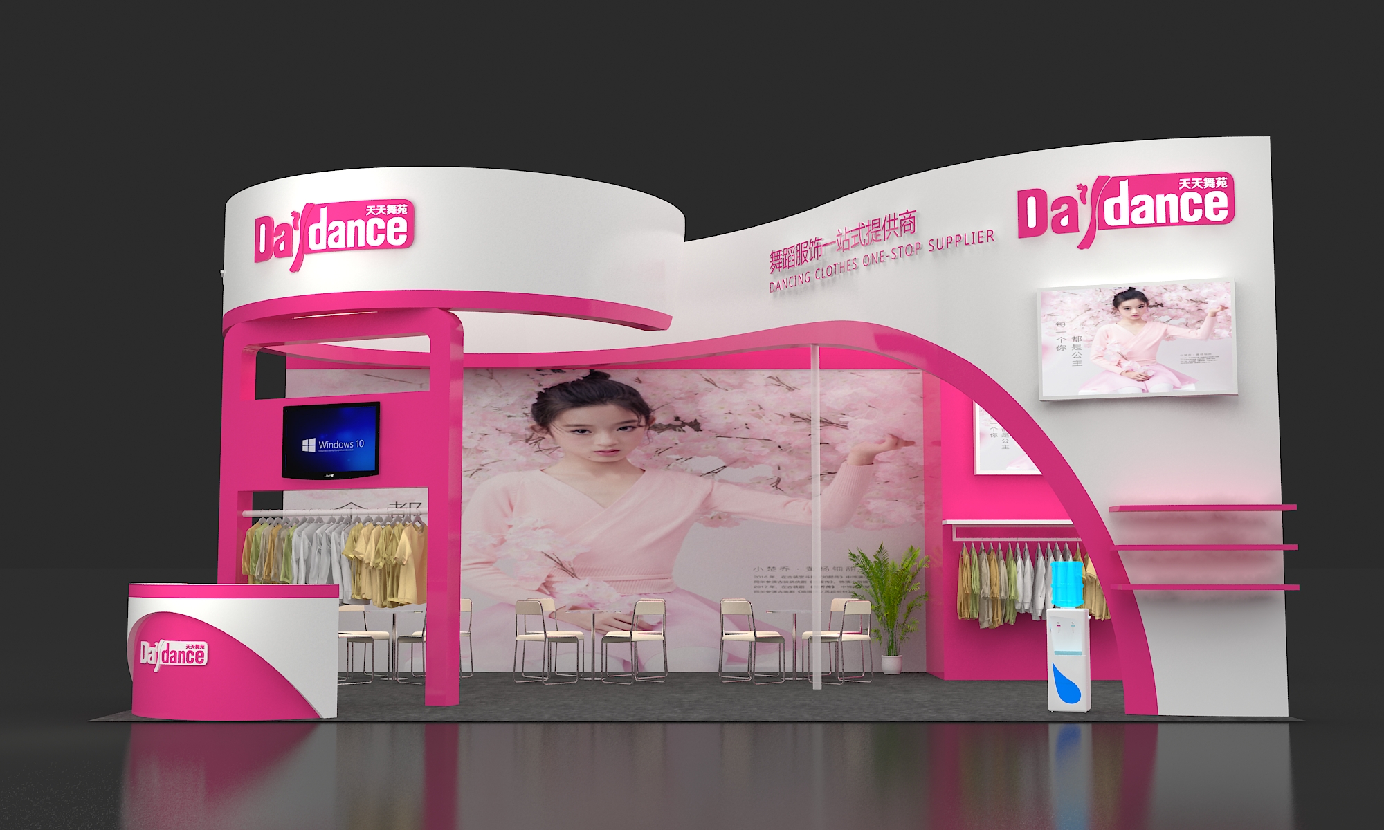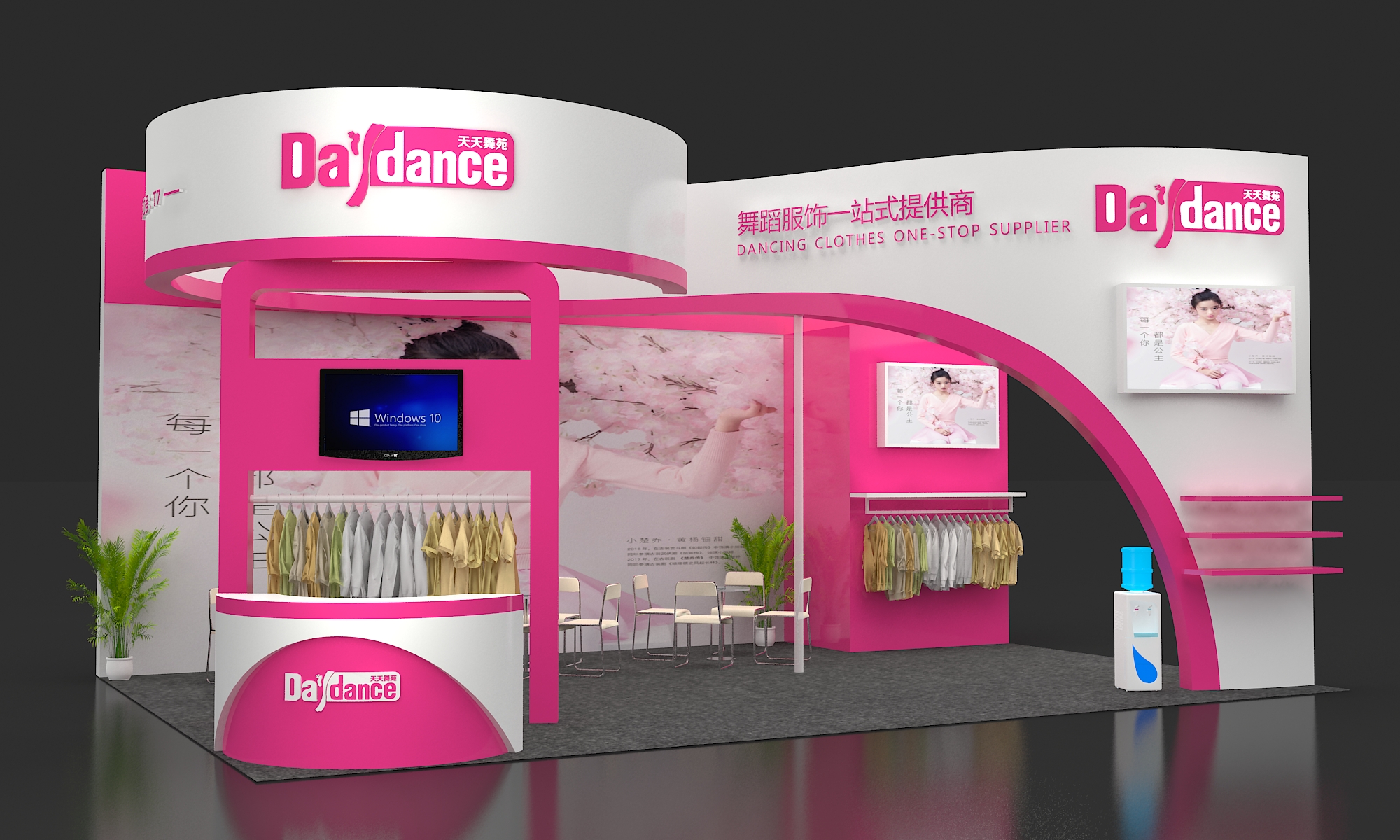 第二點,嚴格控制顏色運用,通常主色調只使用1種,輔助色最多不超2種。輔助色要盡量用于展臺整體線條輪廓的勾勒。